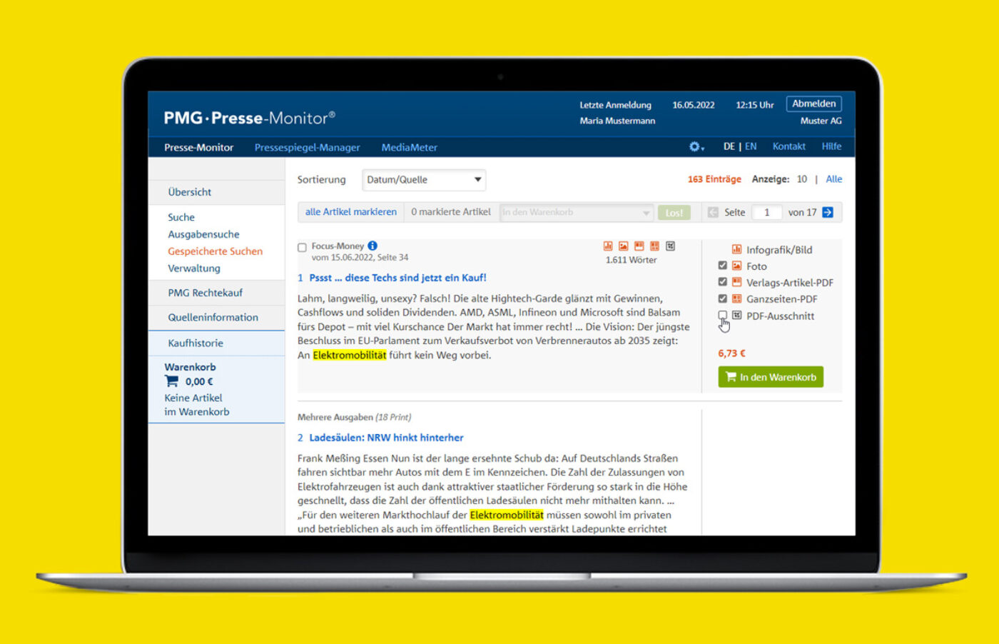 Übrigens: Im Medienpanel finden Sie für jede einzelne Publikation der PMG Pressedatenbank auch eine Übersicht der verfügbaren Artikeloptionen.